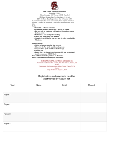 There is an additional cost if you are attending the Central/South game on Friday night, playing golf on Saturday, or attending the lunch on Saturday.